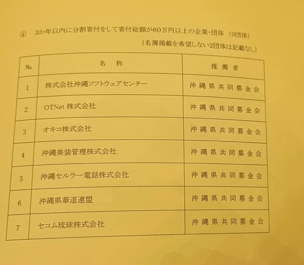 過去3年以内に60万円以上寄付した企業・団体が対象で